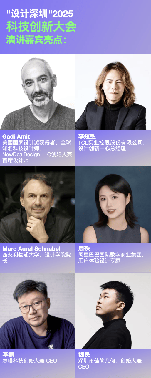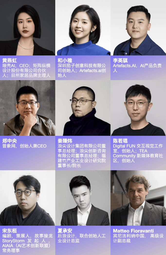 基于竹生态的数字化研究,浪尖设计集团有限公司董事总经理姜臻炜将与我们一起探寻产品与环境设计中的人文触觉。暗壳科技CEO黄燕虹将与我们探讨“AI助力设计师升维,拥抱超级个体时代”,以设计引领AGI构建面向未来的可持续智能城市与生活空间。后浪设计联合创始人工业设计总监夏承安将以设计为笔,书写中国品牌跨境出海增长蓝图。在这场关于未来的深度对话中,把握设计与科技融合的创新脉搏。TCL设计创新中心总经理李炫弘将探索艺术与智能生活的交汇。阿里巴巴国际数字商业集团,商品AI设计业务负责人周殊将以“设计实践中的AI赋能:从工具到伙伴的演进”为题,分享利用AI提升技术普惠与可持续性的落地经验。怒喵科技创始人兼 CEO李楠将通过魅蓝和高端消费市场的分析,破解“高级的设计不好卖”的迷思,以“极客美学”产品设计中的文化共振与用户建立情感链接。