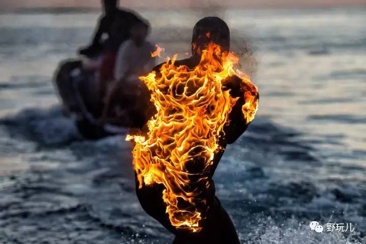 专业自由冲浪选手Jamie OBrien(杰米·奥布莱恩),在 Instagram 账号上向网友征集意见后,决定尝试一项非同寻常的壮举,在大溪地把自己点燃,带着全身的火焰冲浪。