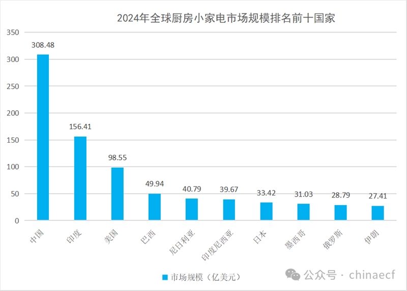 从国家来看,中国、印度、美国是全球仅有的厨房小家电市场规模在百亿美元及以上的国家。数据显示,2024年,中国、印度、美国的厨房小家电市场规模分别为308.48亿美元、156.41亿美元、98.55亿美元,预计到2030年将分别增至392.13亿美元、210.55亿美元、118.76亿美元,从2025年至2030年的复合年均增长率分别为4.03%、5.02%、3.14%。从增长潜力来看,从2025年到2030年,厨房小家电市场增长潜力最大的前十国家中,除土耳其和海地外都是非洲国家。其中,埃及增长潜力最大,未来几年的CAGR达到9.97%,而尼日利亚作为厨房小家电市场规模、增速双领先的国家也十分值得关注。